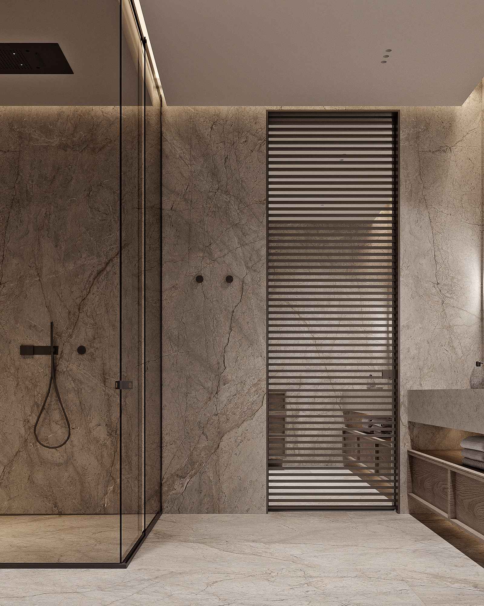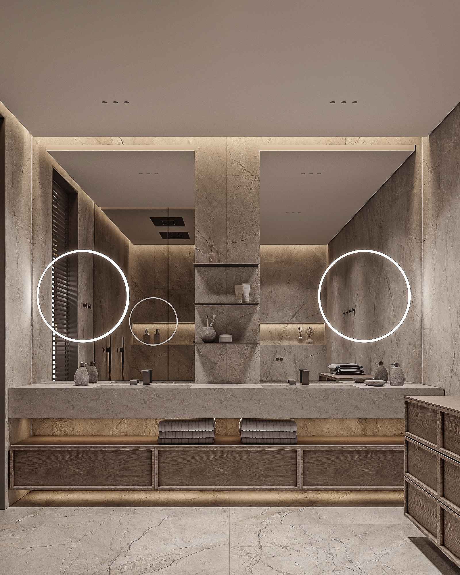 The layout was shaped around function without compromising aesthetics. Subtle contrasts between light and dark, soft curves and linear geometry, matte and reflective surfaces create a space that feels intentional and effortless. The master block forms a cohesive story — each zone smoothly transitioning into the next, unified by high-end finishes, smart design details, and a dedication to modern lifestyle needs.